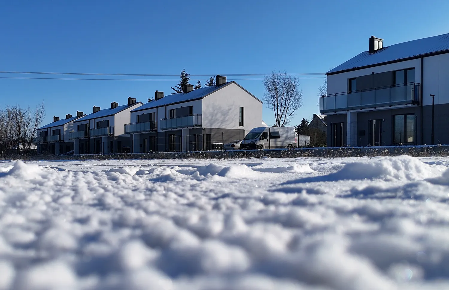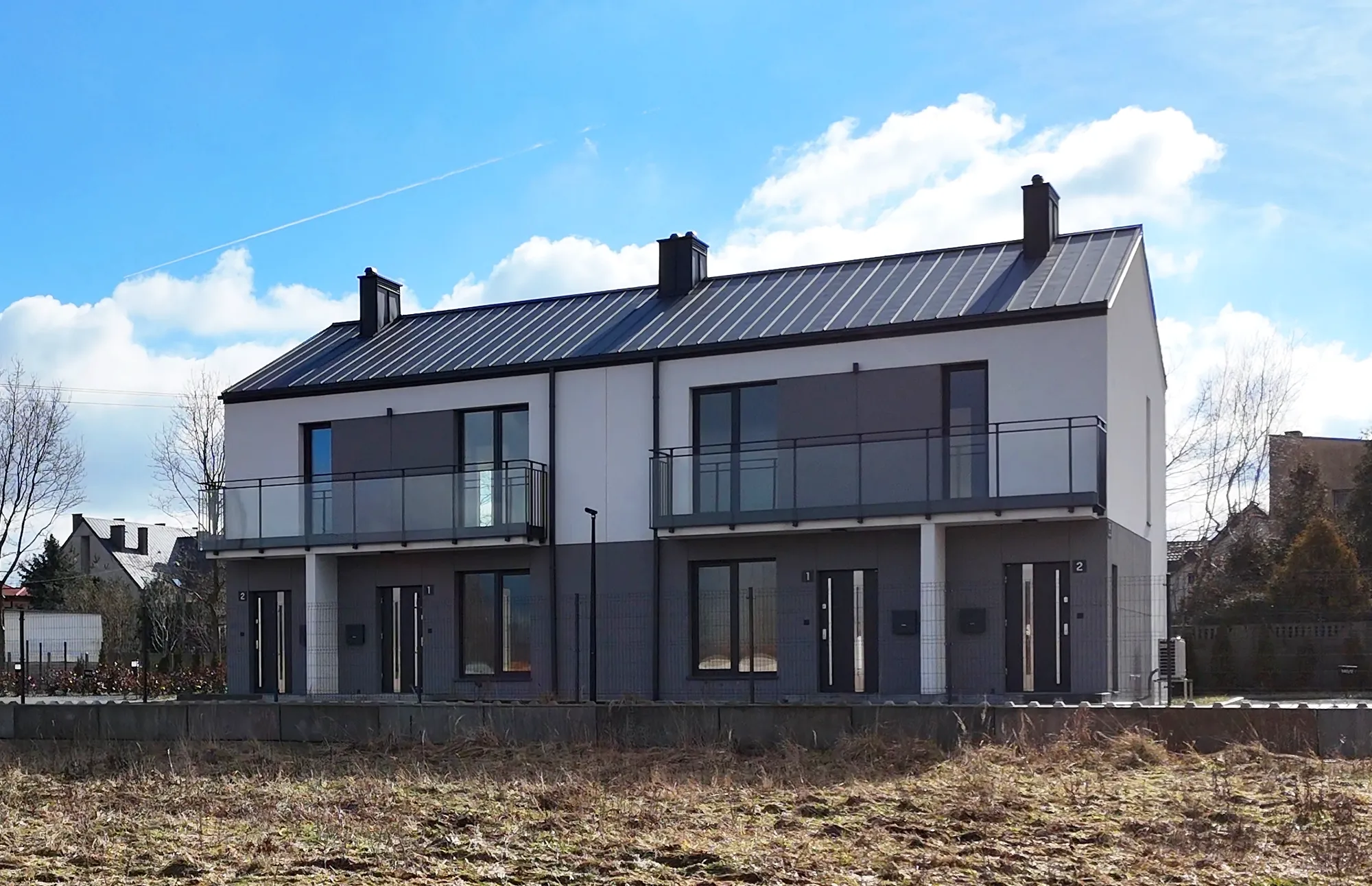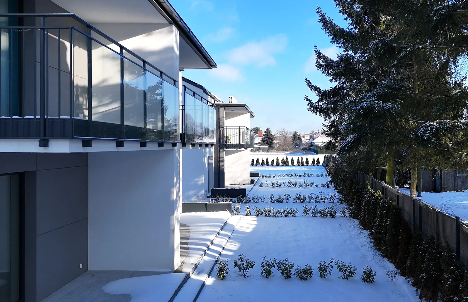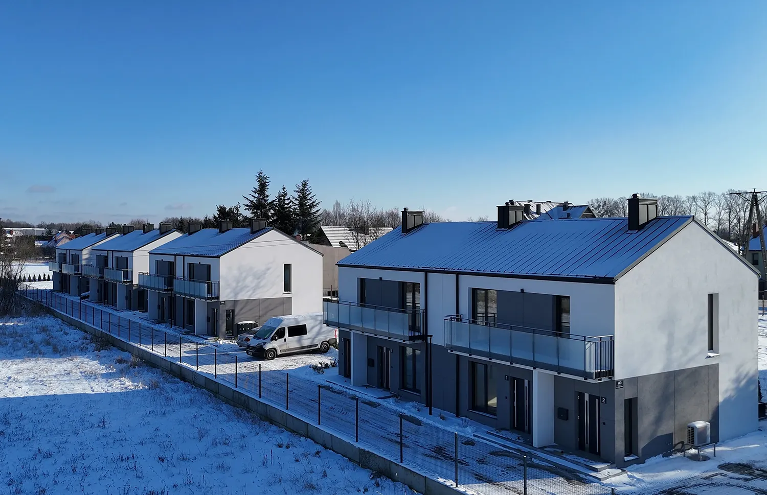 Każdy budynek posiada 2 kondygnacje nadziemne, a mieszkania wyposażone są w przestronne balkony, tarasy lub własne ogródki, co sprzyja kontaktowi z zielenią i ułatwia codzienny odpoczynek. Duże przeszklenia zapewniają doskonałe doświetlenie pomieszczeń oraz poczucie przestrzeni.